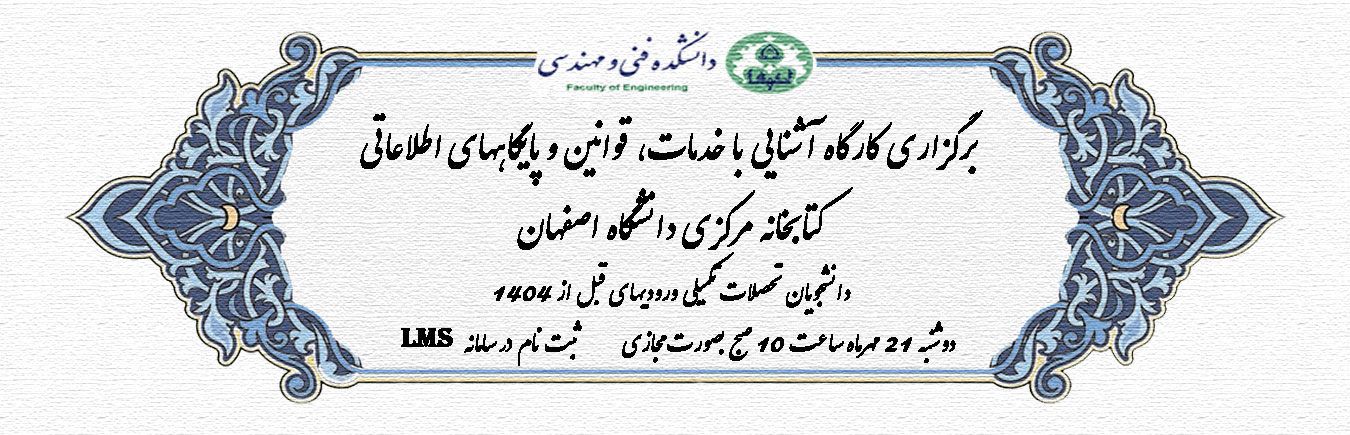 برگزاری کارگاه آشنایی با قوانین ، خدمات و پایگاه های اطلاعاتی کتابخانه های دانشگاه اصفهان به صورت مجازی در سامانه lms
